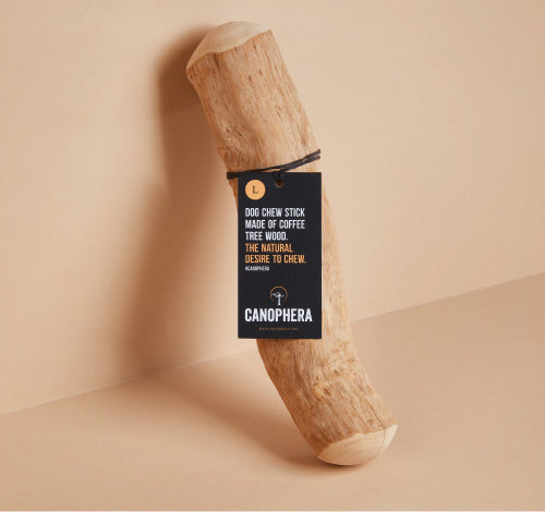 “キャノフィラ”は、かじりたい欲求を満たすだけでなく、かじっている間に削られた細かな繊維の作用でデンタルケア=歯磨きも自然な形でできます。また、素材にもこだわり。カフェインフリーのコーヒーの木を使用し、カロリーはゼロ、人工添加物や動物由来の素材も使用していません。アレルギーや肥満でお困りの愛犬にとっても理想的なアイテムです。