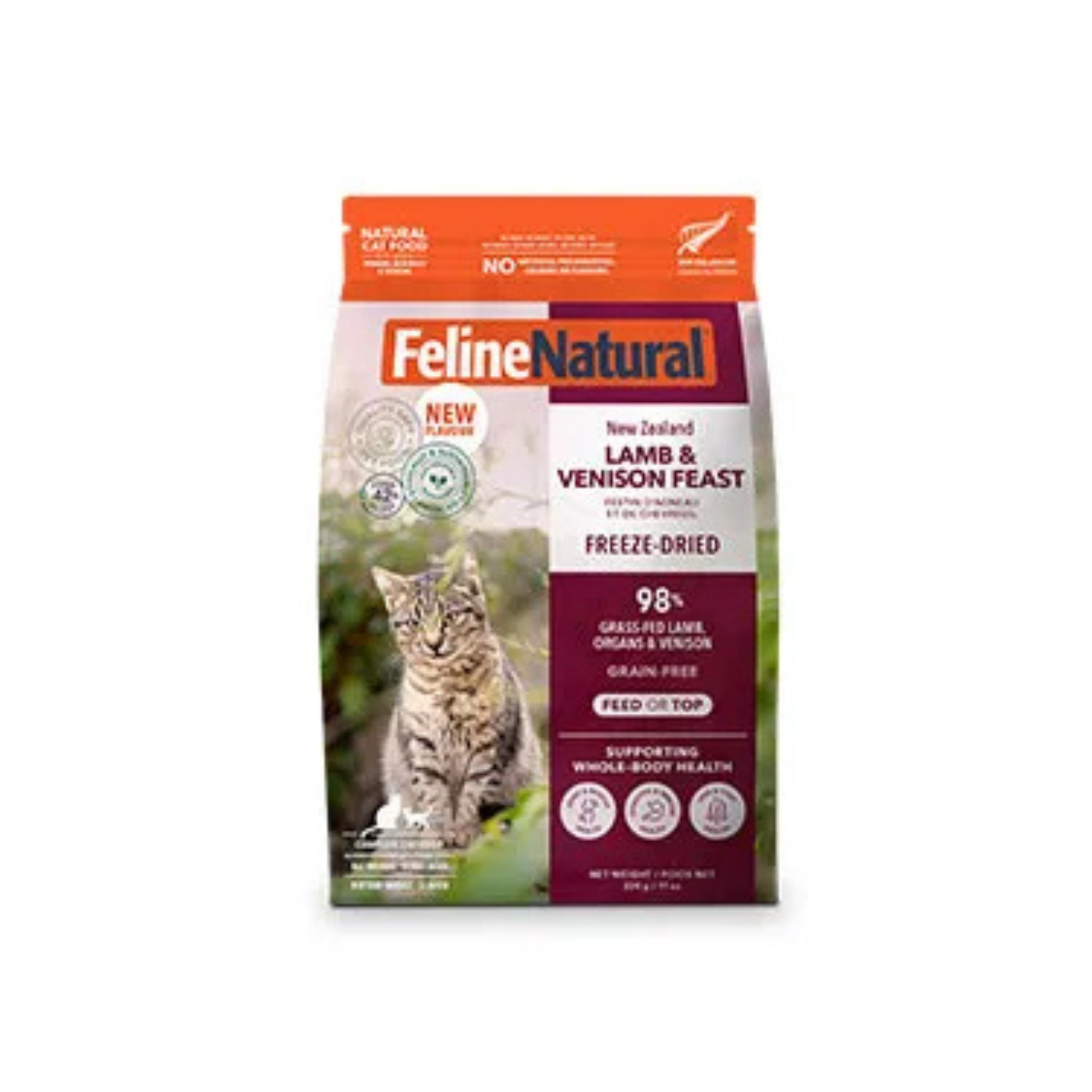 フィーラインナチュラル ラム&ベニソンは、ニュージーランド産のグラスフェッド・ラムをベースに、肉食動物の猫にとって貴重な栄養の詰まった鹿肉を使用した、野性味溢れる総合栄養食です。