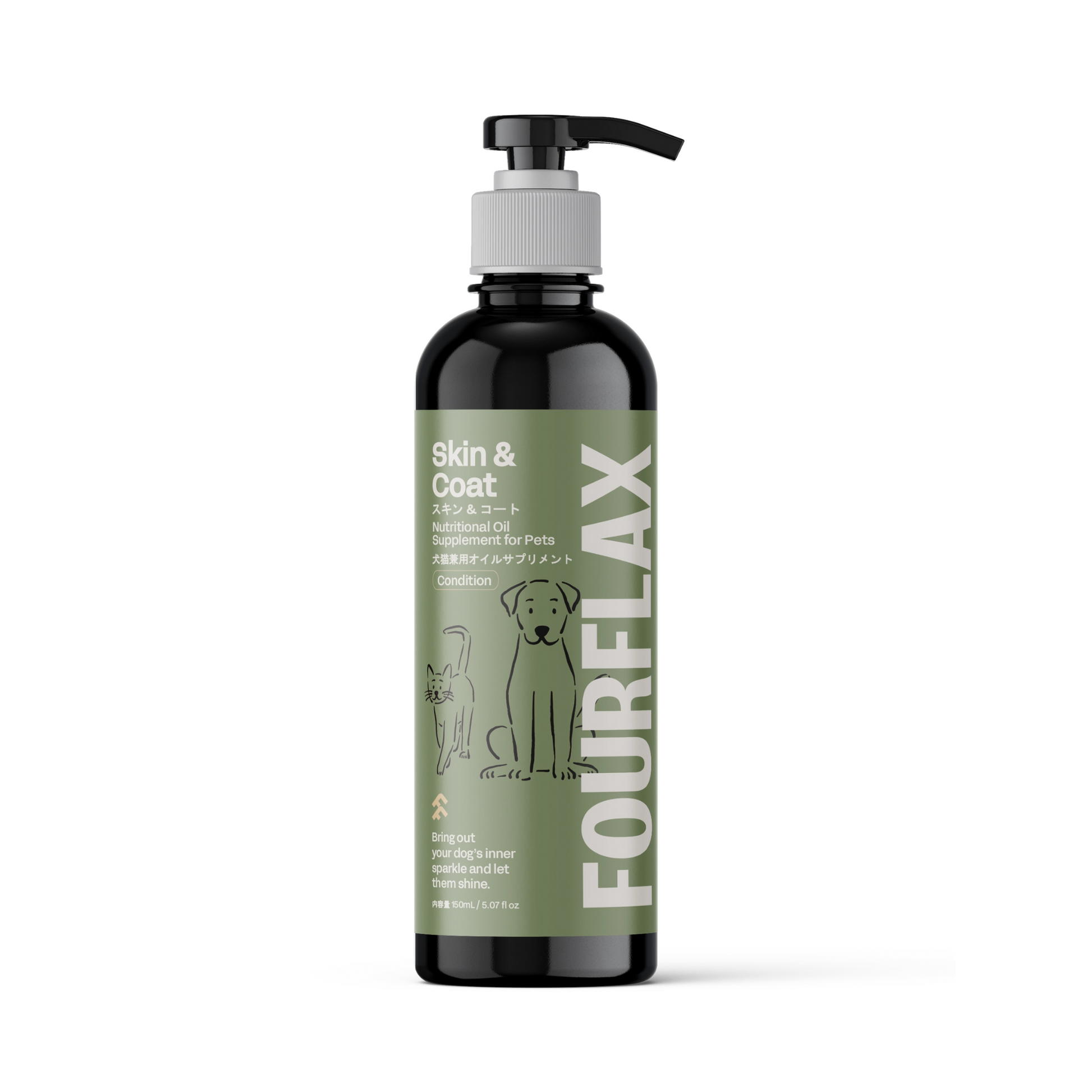 FOURFLAX「スキン&コート」は、犬や猫の皮膚や被毛の健康を保つためにブレンドされたサプリメントオイルです。